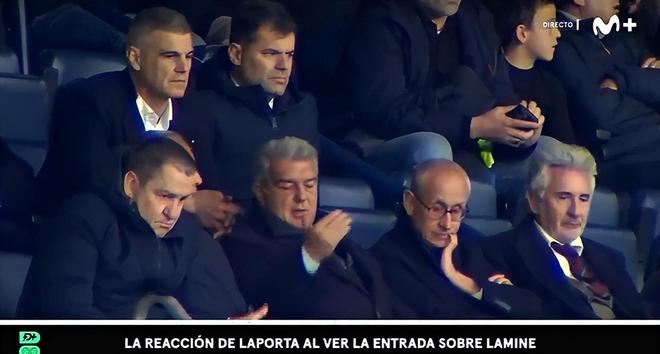 与此同时,镜头捕捉到了陶瓷球场包厢内的一幕,巴萨主席拉波尔塔正在与其他高层坐在一起,当他在现场目睹这次犯规时,神情瞬间流露出愤怒。 |