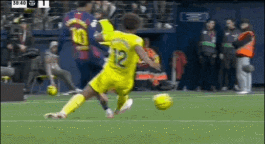 雷纳托-韦加因一次极具危险性的凶狠铲球被直接红牌罚下,当时他从背后双脚飞铲亚马尔,这个动作的侵略性极强,极有可能对其造成严重的伤害。