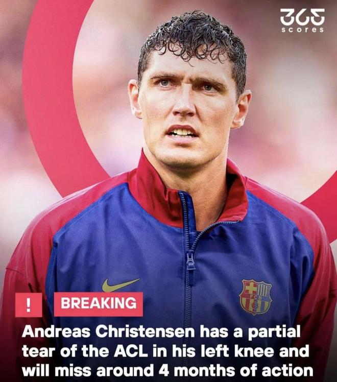 若要启用“伤病特例”条款进行引援,必须由西甲医疗委员会确认该球员的伤缺时间等于或超过4个月,巴萨需在球员受伤后的二十五天内提出医疗评估申请。 4个赛季!伤缺77场比赛 据德转的统计,克里斯滕森自加盟巴萨以来,目前为止合计已经伤缺了339天。