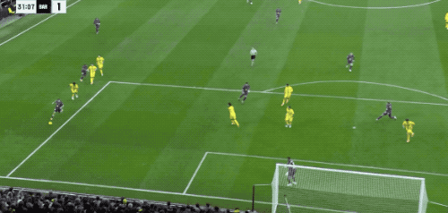 第24分钟,比利亚雷亚尔再次打出快速进攻,莫莱罗传中,布坎南的射门差之毫厘。