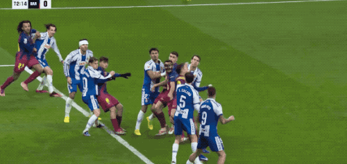 整个上半场,西班牙人完成了7次射门,巴萨则只有3次,两队互交白卷。 下半场开始仅仅过了8分钟,巴萨连续围攻西班牙人的球门,孔德的近距离头球,被德米特洛维奇奋力扑出。