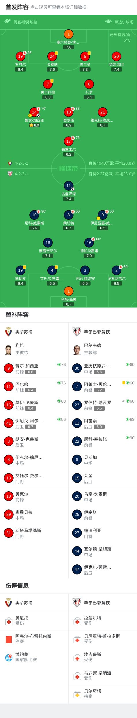 奥萨苏纳11毕尔巴鄂竞技,鲁文加西亚破僵,古鲁泽塔扳平
