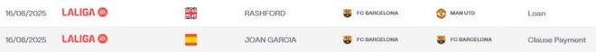 08月16日讯 据西甲官网显示,巴萨今夏新引进的前锋拉什福德已经完成注册,他将可以参加新赛季西甲首轮比赛。 至此,巴萨今夏的两名主要新援门将霍安-加西亚和拉什福德都完成了在西甲的注册。