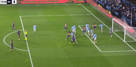 易边再战,巴塞罗那明显在防守端投入了更多的精力,没有给塞尔塔进攻的空间和机会,并且在第73分钟利用角球机会终结了胜负的悬念,拉什福德角球开出后,莱万头球破门,将领先的优势扩大到了4-2,波兰前锋也成为了近80年唯一客场对塞尔塔完成帽子戏法的巴萨球员。
