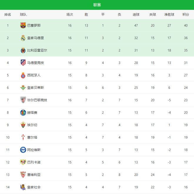 随着皇马02+西班牙人10!西甲最新积分榜:马竞掉队争四乱了