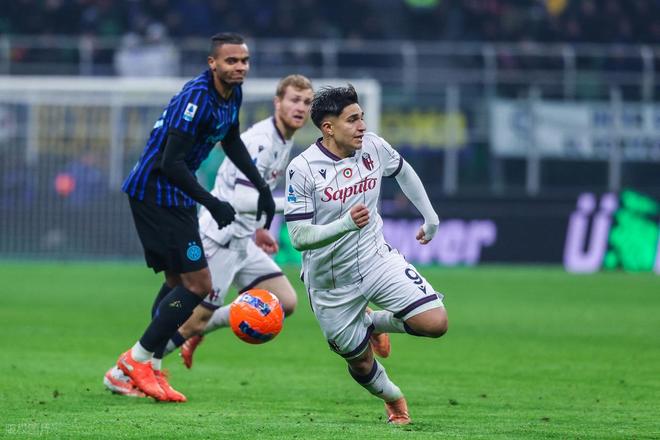 AC米兰前天先赛赢球登顶,国米要想夺回榜首,今天就要在梅阿查球场拿下和博洛尼亚的强强对话。开场后国米就展开猛烈攻势,第5分钟,劳塔罗就在点球点左侧获得不错机会,只是他近距离大力扫射,被门将拉瓦利亚奋力将球扑出。2分钟,国米中路压上,劳塔罗禁区弧顶处精妙直塞,图拉姆插上获得超近距离单刀机会,这是他大力推射还是被拉瓦利亚神勇扑出。第39分钟,国米中后场快速反击,图拉姆中场右侧策应脚后跟往中路一磕,劳塔罗跟进接球往前推进到禁区前沿,挤开2人包夹后将球横传左侧,后排插上的泽林斯基迎球左脚大力推射,皮球应声入网,国米1:0打破僵局。