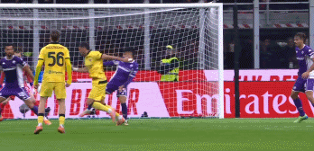 第62分钟,AC米兰左路压上,帕夫洛维奇带球推进后横传做球,莱奥接球往前调整,突然横向甩开防守超远距离大力轰射,皮球直入球门左下死角,这是莱奥打入的新赛季首球,AC米兰1:1快速扳平比分。第80分钟,AC米兰前场右侧转移左侧,又是连续的配合,里奇禁区前沿外脚背撩传,吉梅内斯点球点左侧接球转身扫射被挡出,吉梅内斯机敏跟过去再抢球时被帕里西拉倒。主裁在VAR确认后吹罚了点球,莱奥操刀主罚一蹴而就梅开二度,AC米兰2:1逆转绝杀佛罗伦萨。
