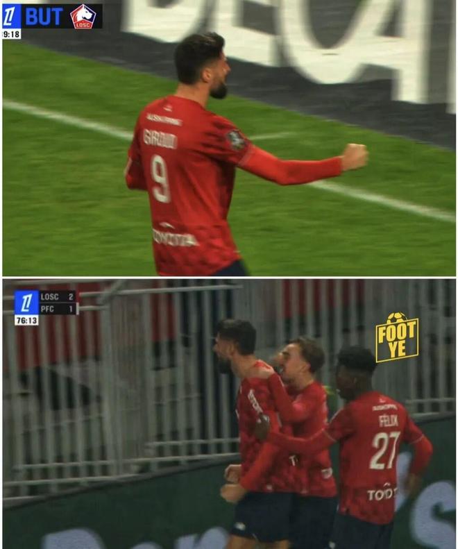 目前,罗马队以27分在意甲领跑,领先米兰和那不勒斯2分。而罗马上一次独自成为意甲领头羊还是在2015年10月31日,距今已经3676天。 梅开二度!39岁吉鲁再刷新纪录 法甲第13轮比赛,吉鲁上演梅开二度,帮助里尔主场4-2击败巴黎FC。
