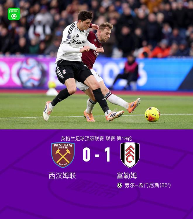 西汉姆联01富勒姆,劳尔希门尼斯绝杀,斯卡莱斯解围失误送礼