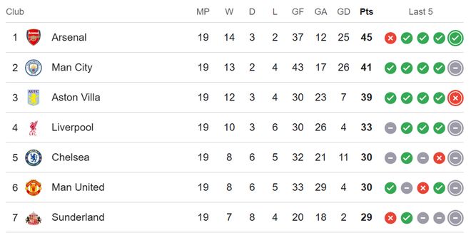 刚刚结束的英超第19轮俨然成了一道分水岭,传统BIG6球队中除阿森纳外,其余五支全部失分。 曼城在光明球场被升班马桑德兰0-0逼平,各项赛事8连胜就此终结。虽然曼城全场控球率高达68%,但14次射门仅4次射正,B席的进球还被判越位无效。 利物浦同样在安菲尔德遭遇0-0闷平,面对利兹联的铁桶阵,红军全场19次射门仅4次射正。热刺客场与布伦特福德互交白卷,两队全场仅5次射正。切尔西和曼联更是在前一比赛日就早早掉队,切尔西2-2战平伯恩茅斯,曼联则被副班长狼队逼平。 英超半程战罢,积分榜前七名的格局可谓泾渭分明又充满悬念。阿森纳以45分强势领跑,这个分数已经与阿森纳2003-04赛季不败夺冠时的半程积分相同,展现出了他们争夺冠军的稳定性和决心。不过,2年前阿森纳曾有过半程50分的壮举,但仍在最后时刻被曼城反超。 紧随其后的是积41分的曼城,他们仍是阿森纳最强劲的追逐者,但近期状态有所波动。异军突起的阿斯顿维拉以39分稳居第三,成为了本赛季最大的黑马,加入了争冠集团的行列。卫冕冠军利物浦目前积33分排名第四,在经历了一波丢分后,争夺冠军的希望已相当渺茫,正为巩固欧冠席位而战。 切尔西与曼联同积30分,两队难分高下,共同构成了争夺欧战资格的中坚力量。而最大的惊喜莫过于升班马桑德兰,他们以28分高居第七,不仅保级无忧,甚至看到了冲击欧战赛场的可能,堪称本赛季的现象级球队。值得一提的是,从第5名切尔西(30分)到第14名布莱顿(25分),多达10支球队分差仅在5分之内,欧战资格争夺异常激烈。 桑德兰本赛季的表现堪称升班马典范。作为夏季转会窗斥资1.9亿欧元重建的球队,他们的投入卓有成效。本赛季英超至今,仅有两支球队保持主场不败:阿森纳10个主场9胜1平,桑德兰10个主场5胜5平。在光明球场,黑猫先后逼平阿森纳和曼城两大夺冠热门。桑德兰能够取得如此成绩,33岁的扎卡功不可没。这位前阿森纳中场核心,如今已经是黑猫的中场大脑和精神领袖。 更令人期待的是,球队目前有6名球员被各自国家队征召参加非洲杯,影响了即战力。等到非洲杯结束,塔勒比、萨迪基、雷尼尔多等主力回归,桑德兰的实力只会更加强大。目前他们仅落后欧战区1分,完全有机会冲击下赛季的欧战资格。 |