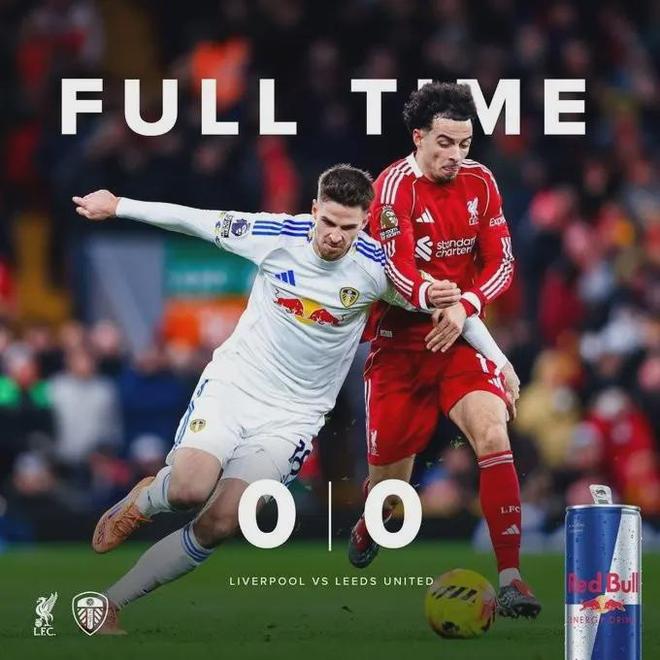 这不是一场普通的平局。当主裁判吹响终场哨音,比分定格在0-0,利物浦众将掩面叹息,而客场作战的利兹联则像夺冠一样疯狂庆祝。联赛3连胜戛然而止,各赛事4连胜作古,斯洛特的球队在占尽优势的情况下,被利兹联的“铁桶阵”啃得只剩骨头。 这不仅仅是3分变1分的遗憾,更是一场关于“风格代价”的残酷拷问。 得势不得分的魔咒:1.96预期进球的讽刺 数据不会说谎,但它足够冰冷。 全场比赛,利物浦轰出19脚射门,射正4次,预期进球(xG)高达1.96,控球率逼近七成(69%)。然而,无论是埃基蒂克第32分钟那记砸在门将佩利身上的空门头球,还是维尔茨在第13分钟、第40分钟连续错失的必进机会,甚至是范戴克第69分钟那记弹地偏出的头槌,都像是一把把钝刀,在红军球迷的心口上来回锯动。