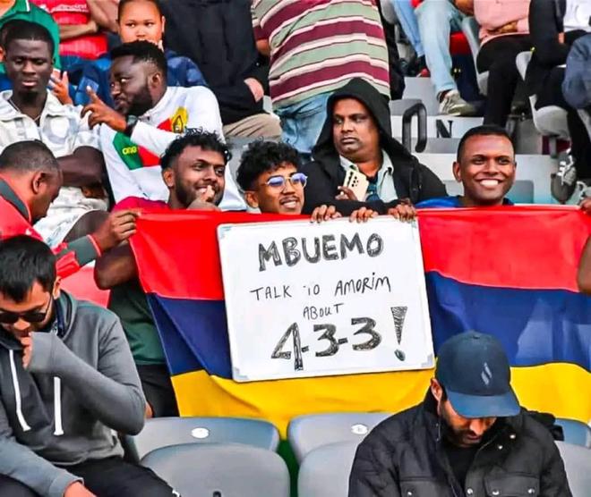 雷速体育10月9日讯 世界杯非洲区预选赛第9轮,喀麦隆客场2-0战胜毛里求斯。在比赛看台上,有毛里求斯球迷举标语调侃效力于曼联的喀麦隆前锋姆伯莫和曼联主帅阿莫林。 标语上写道:“姆伯莫,和阿莫林谈谈4-3-3吧!” 阿莫林因坚持使用三后卫阵型但曼联战绩不佳,引发了不小的质疑。而姆伯莫在今夏加盟曼联后,贡献2球1助。 而在这场世非预比赛中,姆伯莫代表喀麦隆替补出战,并攻入一球。 |