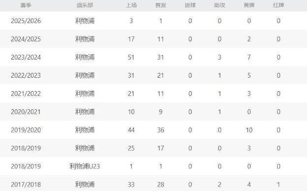 作为足坛豪门,利物浦阵中涌现出不少带刀后卫。提起带刀后卫,红军球迷们会想到里瑟的重炮轰门、范戴克的泰山压顶头球,阿诺德的无解任意球,甚至想到远射破荒的马蒂普。但乔戈麦斯却将“不进球”这项数据,保持得惊人的稳定。