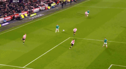 第44分钟,加克波禁区内疑似被绊倒,裁判没有理会,布伦特福德踢出快速反击,达姆斯高送出直塞,沙德单刀推射建功,2-0!