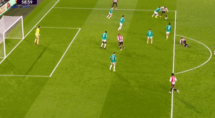 2球落后,利物浦终于有所反应。伤停补时阶段,布拉德利右路突破传中,埃基蒂克抢点射门未果,科尔克兹包抄推射得手,利物浦扳回一城,1-2!