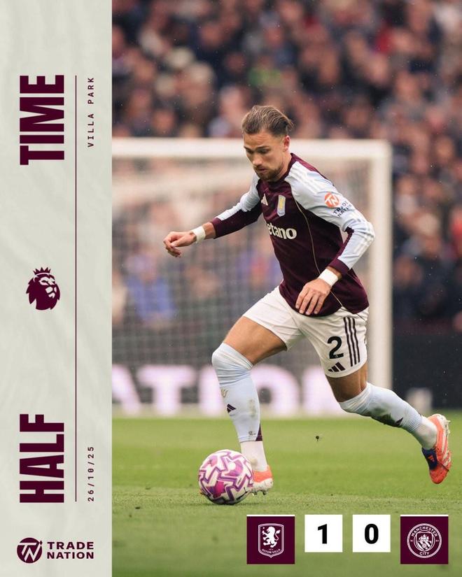 英超第9轮,维拉主场对阵曼城,上半场战罢,维拉1-0领先。据统计,维拉近30场先进球的英超主场比赛保持不败。