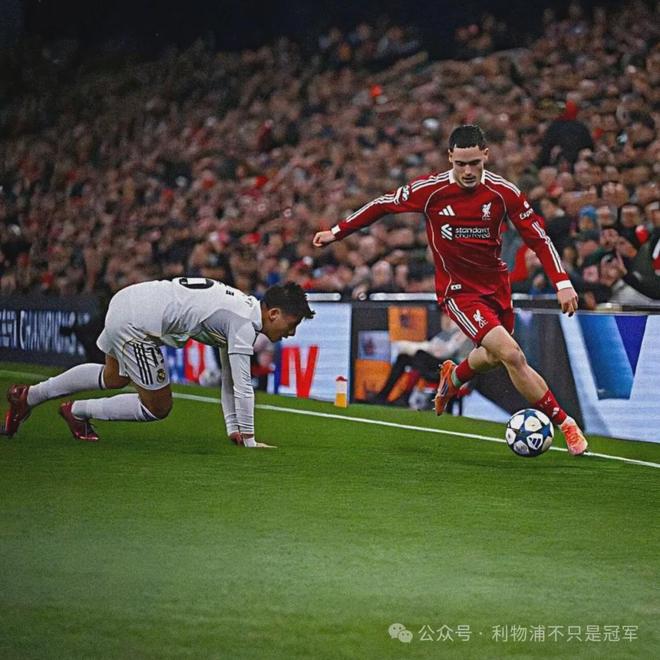 利物浦做好了以上这三点,再加上安菲尔德主场气氛的加持,利物浦一度将皇马压在后场,连续展开进攻,气势如虹。皇马直到第45分钟才有第一脚射正,下半场更是0射正,尽管控球率占优但创造出真正的机会的,有威胁进攻的都是利物浦。 4、维尔茨今天真正打了左边锋位置 正如我们赛前预计的,今天利物浦首发与上一场只换了一个人,那就是维尔茨替换加克波首发。 这一次是他第一次真正打左边锋位置,此前在英超对水晶宫那一场,维尔茨只是在阵型图上被放在左边锋,实际还是打的10号位,而今天他防守时回到左路,进攻时除了在左路活动,还经常穿插到中路和右路,接应埃基蒂克和萨拉赫。 比如这一次利物浦全场最好的机会,就是维尔茨跑到右路送出的非常舒服的传中,可惜库尔图瓦太过神勇,用腿挡出了射门。