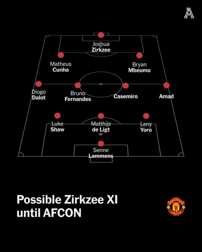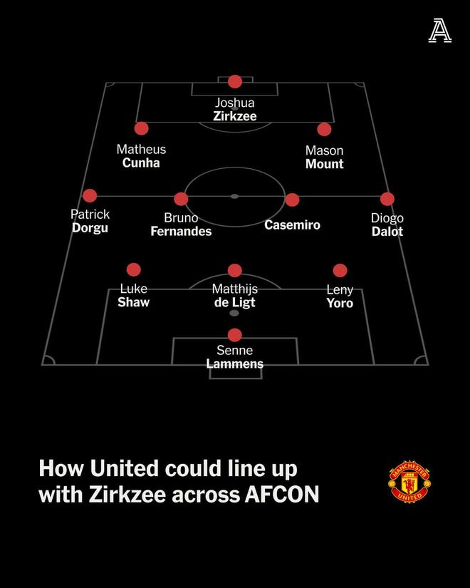 齐尔克泽头球摆渡的能力或许不及谢什科,但他具备扎实的背身拿球能力,以及传球柔和、易于串联进攻的特点。他此前在阿莫林麾下踢10号位的经验也可能派上用场,前提是主教练希望继续让库尼亚或姆伯莫担任名义上的中锋,而让这位荷兰人从更深的位置进行轮转穿插。 非洲杯期间的人员短缺将进一步使曼联的情况复杂化,但这应该会增加齐尔克泽获得出场时间的可能性。 “当我观察训练时,有些球员应该上场,但很难通过一场比赛就把一些球员从阵容中拿掉,因为他们在训练和比赛中也做得很好,”阿莫林在11月初谈到非洲杯离队影响时表示,“所以,其他球员将有机会来帮助我们。” 如果谢什科的膝伤恢复速度比最初预期的要慢(目前预计将缺席约一个月),齐尔克泽可以再次担任中锋,辅以库尼亚等人作为10号位。 曼联在非洲杯期间可能会损失一部分反击威力,但齐尔克泽为多种人员配置问题提供了一个可行的解决方案。