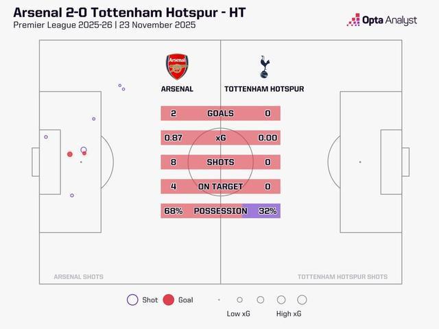 热刺本赛季两场联赛上半场0射门,为英超唯一一队