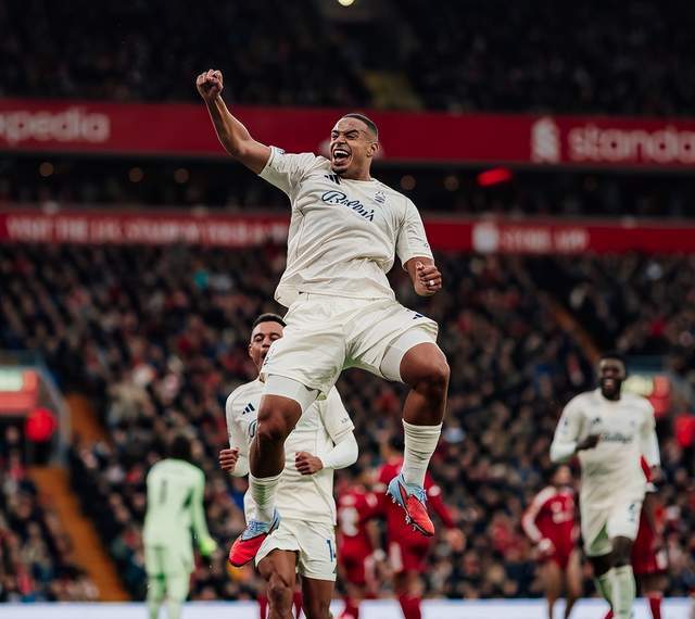 英超第12轮,诺丁汉森林客场挑战利物浦。在安菲尔德球场6万观众的见证下,诺丁汉森林3-0大胜,穆里略、萨沃纳、吉布斯-怀特各进1球。1963年以来,诺丁汉森林首次在联赛客场2连杀利物浦!