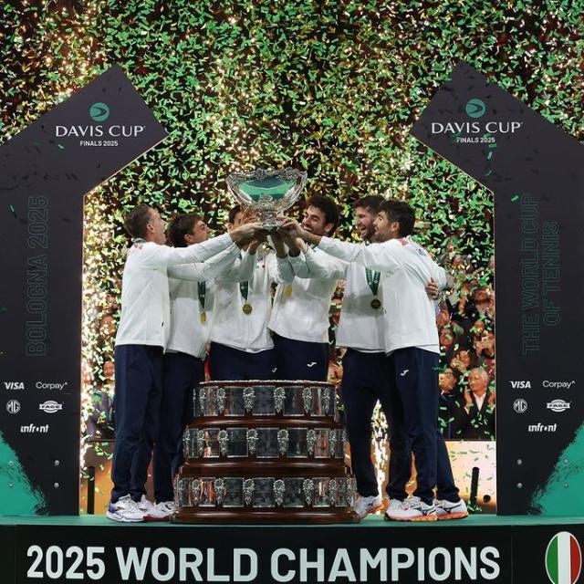 网球戴维斯杯决赛,贝雷蒂尼2比0战胜布斯塔,科博利2比1战胜穆纳尔,意大利队斩获冠军。意大利队成为1972年后首个达成三连冠的队伍,贝雷蒂尼个人杯赛单打10连胜。在辛纳、穆塞蒂两位世界前10选手缺阵的情况下,意大利队依旧完成了网球戴维斯杯三连冠的壮举。意大利作为卫冕冠军,先后2比0击败奥地利、比利时和西班牙夺冠,贝雷蒂尼和科博利为意大利出战击败了所有的对手,没有给双打选手出场的机会,以小场6比0全胜的战绩再次实现卫冕。 安洗莹2比0战胜瓦尔达尼,夺得澳大利亚公开赛冠军