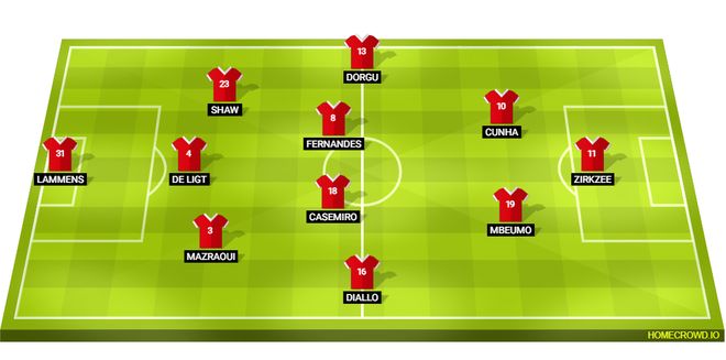 曼联首发11人预测: 拉门斯;马兹拉维,德利赫特,卢克肖;阿马德,卡塞米罗,布鲁诺·费尔南德斯,多尔古;姆贝乌莫,库尼亚;齐尔克泽 |