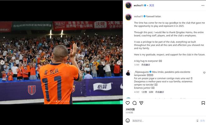 据了解,辽宁铁人内援引援工作已经基本完成,球队后续还将陆续官宣新援。外援层面,辽宁铁人也取得了进展。根据最新的报道,辽宁铁人已经接近从巴甲球队福塔雷萨签下29岁前锋布雷诺-洛佩斯。 报道称,辽宁铁人将支付1000万雷亚尔(约1267万元)买下这位巴西前锋50%的所有权,布雷诺已经接受了辽宁铁人的报价,目前双方俱乐部正在进行最后的谈判。布雷诺上个赛季各项赛事共出场52场,攻进10球并送出7次助攻,身价为250万欧。 除了韩镕泽转会辽宁铁人,青岛海牛还面临着外援离队的情况。球队保级大功臣之一的韦林顿-席尔瓦在个人社交账号上发文,向俱乐部和球迷告别。