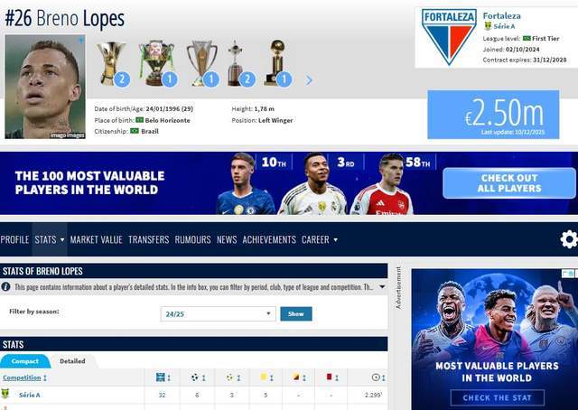 第三个,洛佩斯现在绝对不是过气球星,他正值巅峰,而且只花150万欧就能把他带到辽宁,非常超值了。要知道,他最高身价280万欧,目前也有250万欧,放到整个中超,身价也能排进前5名,仅次于米特里策和克雷桑等4位顶级巨星,堪称下赛季真正的中超大杀器。