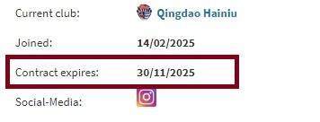 2025赛季中超联赛结束后,青岛海牛队的五名外援合同全部到期,截至目前,兰克尔-泽、萨里奇、拉德曼诺瓦茨和韦林顿-席尔瓦都已确定离队。
