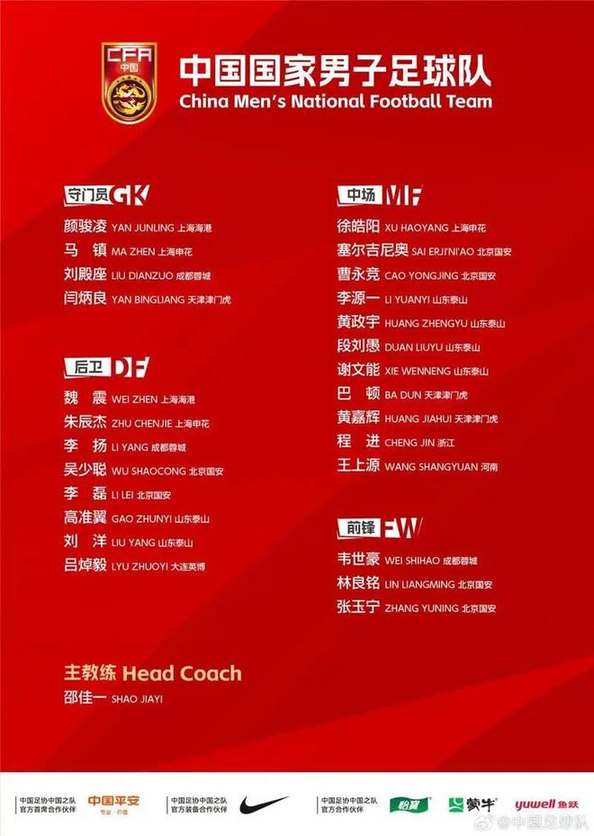 2026新年的第一天,中国足协公布了26人的最新一期国家队名单,这也是新帅邵佳一上任后的首份国足名单。不过,或许会让上海球迷感到郁闷和不解的是,作为联赛冠亚军的海港、申花两队,加起来也只有5名国脚,远不及北京国安、山东泰山。 在邵佳一公布的26人名单中,老队长王大雷、中卫蒋光太、蒋圣龙落选,山东泰山后卫刘洋回归,正在备战U23亚洲杯的王钰栋、蒯纪闻等人无缘本次集训,天津津门虎门将闫炳良、成都蓉城后卫李扬、后卫吕焯毅3人首次入选国家队,北京国安中场塞尔吉尼奥是唯一入籍球员。山东泰山和北京国安是国脚输出大户,各有6名球员入选。 此外,国足新帅邵佳一的教练团队以青岛西海岸原班核心成员为主,包括助理教练毛雷尔、刘健、周挺、守门员教练杨智等,刚刚退役的上海申花老将于汉超将以训练员身份进入教练组。