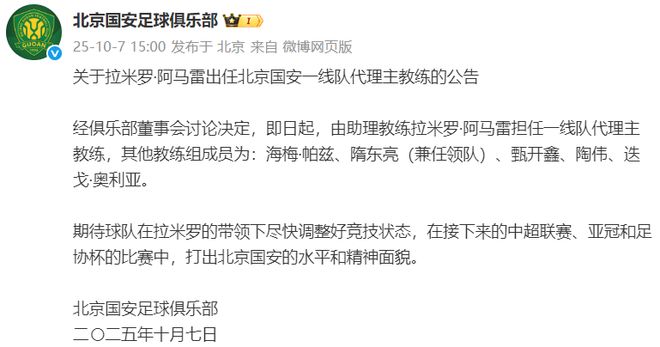 中超先河!北京国安另辟蹊径:官宣“沙滩足球皇帝”担任代理主帅