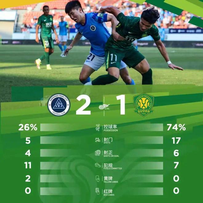 10月18日,在2025华润饮料中超联赛第27轮比赛中,北京国安客场1-2负于深圳新鹏城。 上半场比赛,第13分钟,深圳新鹏城由加西亚先入一球。随后,林良铭在禁区内得球,可惜被对方出击的门将破坏。第33分钟,深圳新鹏城再入一球。第37分钟,法比奥门前推射打入一球,但为他传中的林良铭越位在先,此球无效。半场比赛结束,北京国安0-2落后。 易边再战,拉米罗迅速做出人员调整。中场休息期间连换3人,随后又换上张稀哲加强攻势。第66分钟,张玉宁抢点甩头攻门偏出。第68分钟,张稀哲策动进攻,何宇鹏右路低平球传中,张玉宁包抄推射空门,扳回一球!补时阶段,杨立瑜的内切突破制造威胁,被对方门将扑出。 最终,在2025华润饮料中超联赛第27轮比赛中,北京国安客场1-2负于深圳新鹏城。 /赛后数据/