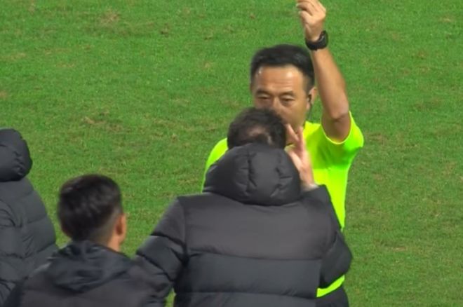 当时西海岸队的进攻并未越位,但是边裁却“越俎代庖”,抢先VAR一步,直接吹掉西海岸队的进攻。这一误判,也让张呈栋非常不满,他跑到场边怒骂裁判,最后自己申请到了一张红牌。