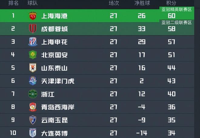 前面27轮战罢,山东泰山12胜8平7负,积44分,排名中超积分榜的第5位,由于已经落后榜首上海海港有整整16分的差距,意味着山东泰山早早退出了本赛季中超争冠行列。另外,山东泰山距离第4名北京国安也有7分的差距,这意味着山东泰山即便想要跻身中超四强,也渐渐变成了一种奢望。