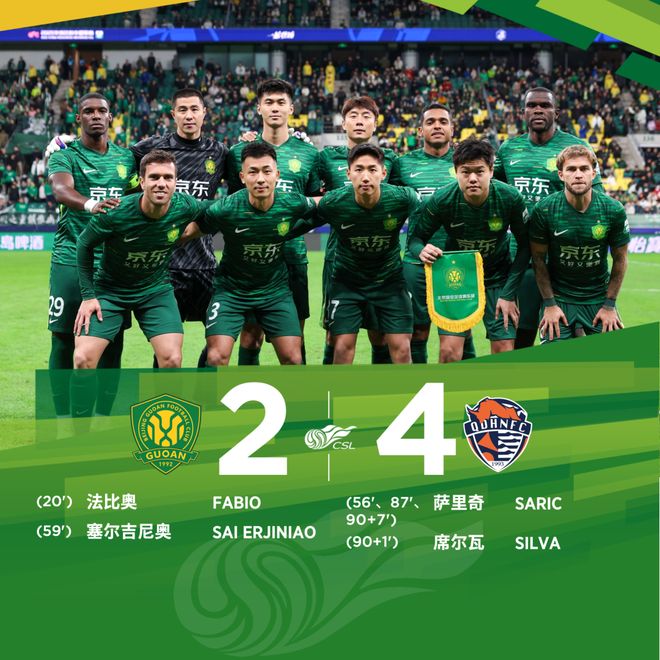 10月26日,在2025华润饮料中超联赛第28轮比赛中,北京国安主场2-4负于青岛海牛。 第8分钟,法比奥禁区内摆脱防守射门,皮球高出横梁。第20分钟,达万带球推进后送出直传,法比奥倒地卧射破门,为球队取得领先!这也是法比奥在本赛季联赛取得的第22个进球,他超越耶利奇,成为球队历史上在单个赛季联赛中进球最多的球员。上半场比赛结束,北京国安1-0领先。 易边再战,第56分钟,青岛海牛由萨里奇罚中点球,扳平比分。第59分钟,达万再次送出妙传,塞尔吉尼奥突入禁区单刀破门,帮助国安再度取得领先!第79分钟,林良铭门前抢点,可惜射门被对方门将化解。第81分钟,对方门将又连续将古加和曹永竞的射门化解。第87分钟,萨里奇再入一球,为青岛海牛扳平比分。补时阶段,青岛海牛由席尔瓦打入一球,随后,萨里奇在反击中推射再入一球。 最终,北京国安主场2-4负于青岛海牛。