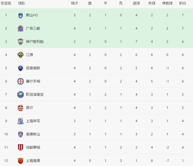 在亚冠东亚区的积分榜上,排名第1的是蔚山HD,2胜1平拿到7分。广岛三箭也是7分,排名第2。中超的3支球队都不在前8,处于淘汰区。上海申花只踢了3场,1胜1平1负,拿到4分,排名第9。成都蓉城踢了4场,1胜1平2负,拿到4分,排名第11,也就是倒数第2。上海海港最耻辱,1平3负,只拿到1分,排名垫底。中超的3支强队在亚冠赛场就是一个大笑话,战绩惨不忍睹,丢人现眼。 |