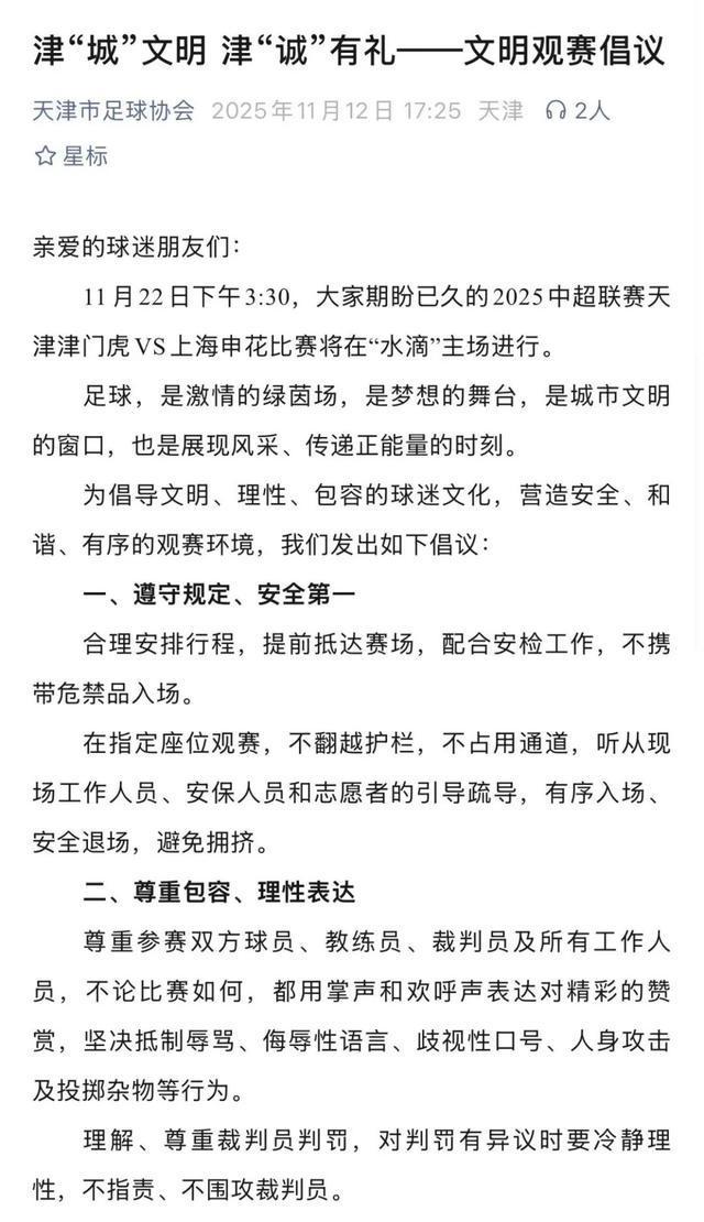 中足联官方发布处罚公告,津门虎球员陈哲宣在对阵泰山的比赛中辱骂裁判员,禁赛5场,罚款5万。 中超第29轮,山东泰山vs天津津门虎,比赛第87分钟,陈哲宣实施非体育行为,辱骂裁判员,主裁先是黄牌警告,随后直接掏出红牌罚下陈哲宣。 中足联处罚公告如下: 随后,天津市足球协会发布文明观赛倡议,希望球迷们理性观看中超联赛最后一轮天津津门虎将主场对阵上海申花的比赛。 来源 东方体育日报 |