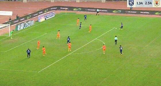 进球时刻 第38分钟克雷桑直塞,泽卡拿球突入禁区小角度射门打进,山东泰山客场1-0领先。