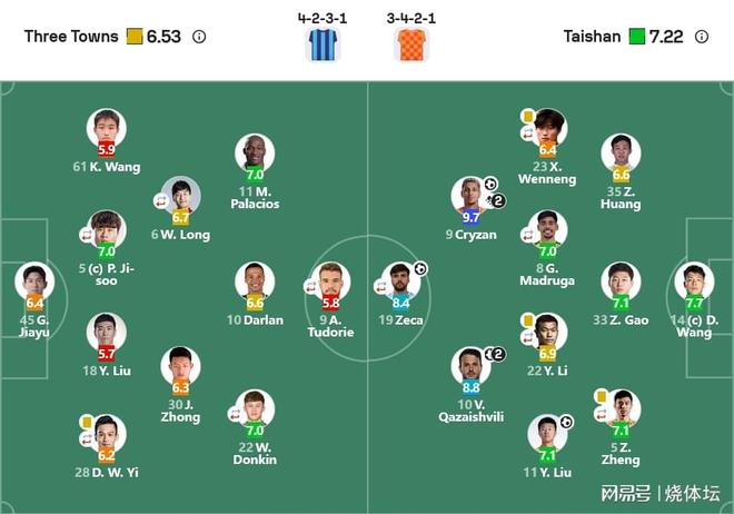 武汉三镇 首发【4-3-3】 门将:45-郭嘉宇 后卫:5-朴志洙【46分,23-任航】、18-刘奕鸣、28-王毅【72分,58-阮景威】、61-王康 中场:6-龙威【51分,8-汪晋贤】、10-达兰·门德斯、30-钟晋宝 前锋:9-图多列【79分,54-朱文传】、22-西奥斯、22-沈子贵【65分,47-闵紫曦】 替补:1-魏黾哲、14-邵镤亮、26-张涛、52-余天翔、56-张振阳、13-郑凯木、29-郑浩乾 山东泰山 首发【4-2-3-1】 门将:14-王大雷 后卫:5-郑铮【46分,38-李小恒】、11-刘洋、33-高准翼、35-黄政宇 后腰:8-马德鲁加【76分,6-王彤】、22-李源一【71分,41-依木兰】 中场:9-克雷桑、10-卡扎伊什维利、23-谢文能【76分,45-陈泽仕】 前锋:19-泽卡【81分,29-陈蒲】 替补:32-孙启航、51-刘琪玮、17-吴兴涵、27-石柯、31-赵剑非、59-梅帅军、21-刘彬彬 |