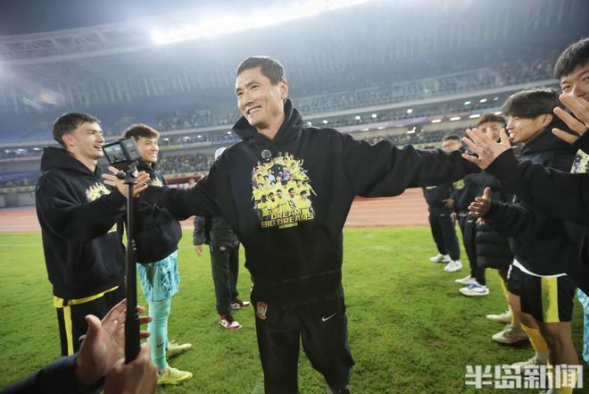11月22日,2025赛季中超联赛收官战青岛西海岸主场1:0战胜长春亚泰。赛后,西海岸俱乐部为新任国足主帅邵佳一举行简短而隆重的送别仪式。从临危受命完成保级,到打造年轻化铁血之师,再到荣升国足主帅,一年半的时间邵佳一用完美答卷为西海岸生涯画上句点。仪式后,邵佳一绕场一周,感谢球迷对他的支持。