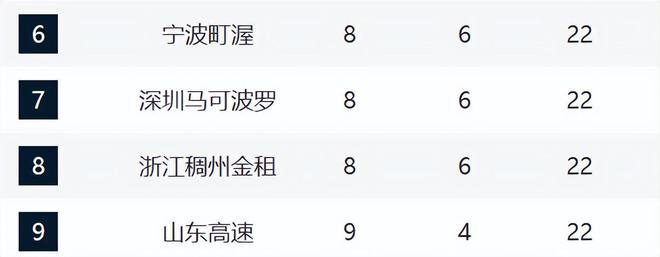 宁波、深圳和浙江排在6-8,都是8胜。这轮宁波击溃了山西,攻守全部保持压制。深圳现在的侵略性还非常强,只要打快,对手基本上很难跟上。浙江目前已经四连胜, 他们的趋势越来越好。 山东少打一场为9胜,现在排在第九,而且他们已经获得了七连胜。甚至大外已经在路上了,他们的阵容架构会越来越完美。而且最近十场,他们和浙江都是7胜3负,状态非常好。