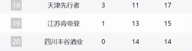 18-20分别是天津、江苏和四川。天津最近10场拿下了三场,他们正在摆脱困境。 |
