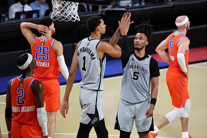 在此前的一场NBA杯西部决赛中,圣安东尼奥马刺经过苦战后以111比109险胜了主场作战的俄克拉荷马城雷霆,顺利挺进NBA杯决赛。接下来他们将会与战胜了奥兰多魔术的纽约尼克斯争夺NBA杯冠军,而雷霆则是遭遇淘汰。本场比赛后,拿下了3连胜的马刺的战绩提升到了18胜7负,排名也是攀升到了西部第4位;而结束了16连胜的雷霆的战绩则是下滑到了24胜2负,排名继续稳居西部榜首位置。