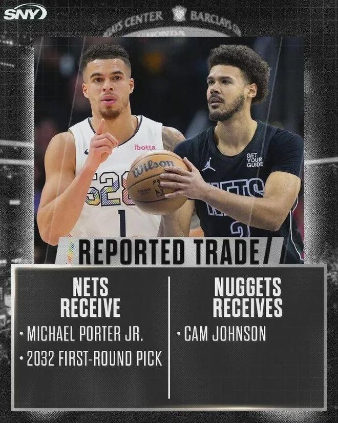 去年休赛期,掘金将小波特和一个32年无保护首轮签交易至篮网,换回卡梅伦-约翰逊。