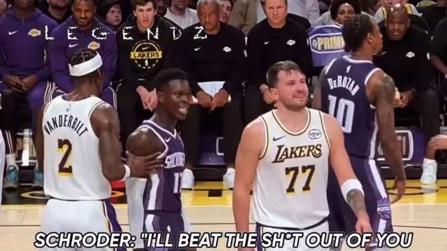 比赛结束大约40分钟后,在湖人主场的内部走廊,施罗德赛后主动去找的,正是东契奇。
