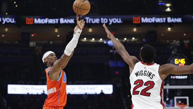 对于全明星球员谢伊·吉尔杰斯-亚历山大和俄克拉荷马城雷霆队来说,开局不利时,坚持和自律是关键。在客场对阵热火的比赛中,吉尔杰斯-亚历山大错失了球队顽强21分逆转取胜的机会,而本场比赛他开局前五次出手全部偏出。迈阿密热火一度将领先优势扩大到9分,但随后吉尔杰斯-亚历山大在雷霆打出一波15-0的进攻高潮中,10投10中,帮助球队锁定胜局,最终俄克拉荷马城以124-112轻松取胜。 雷霆队主教练马克·戴格诺特谈到了吉尔杰斯-亚历山大的稳定性,以及这种稳定性如何感染了其他队友,让他们在第三节以39-26的比分击败热火队。 “他一直都是那个状态。他拥有令人难以置信的稳定性,这对任何球队来说都是一个巨大的挑战,但最近对我们来说尤其如此,因为在过去的八到十场比赛中,我们的三分球命中率非常低,”戴格诺特说道。“而且,在很多情况下,我们都获得了非常好的投篮机会。我们最近十场比赛的投篮质量比前三十场比赛都要好。” “然而,我们的投篮命中率却不高。你必须要有毅力、自律和坚持到底的信念。他个人具备这些品质。我认为我们今晚作为一个团队也做到了。” 吉尔杰斯-亚历山大全场19投10中,包括两记三分球,得到29分,并贡献8次助攻和5个篮板。杰伦·威廉姆斯高效地13投9中,得到18分,外加4个篮板、4次助攻和2次抢断。切特·霍尔姆格伦得到16分、10个篮板和3次盖帽。 雷霆队利用对手23次失误得到39分,投篮命中率高达51%,而热火队的投篮命中率为53%,三分球命中率也达到53%(32投17中)。俄克拉荷马城的防守最终成为比赛的胜负手,他们在第三节单节净胜迈阿密13分。 吉尔杰斯-亚历山大在雷霆队获胜后大放异彩