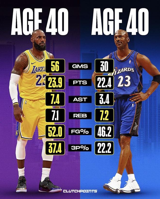 明明是一张“40岁对比图”,但它其实把两种完全不同的职业生涯路线摆在了同一个画面里:一个是40岁还能把球队进攻盘起来、还能稳定高效产出的长期型巨星;另一个是巅峰期把冠军、得分王和个人奖项打包带走、把时代统治到极致的短爆型天花板。