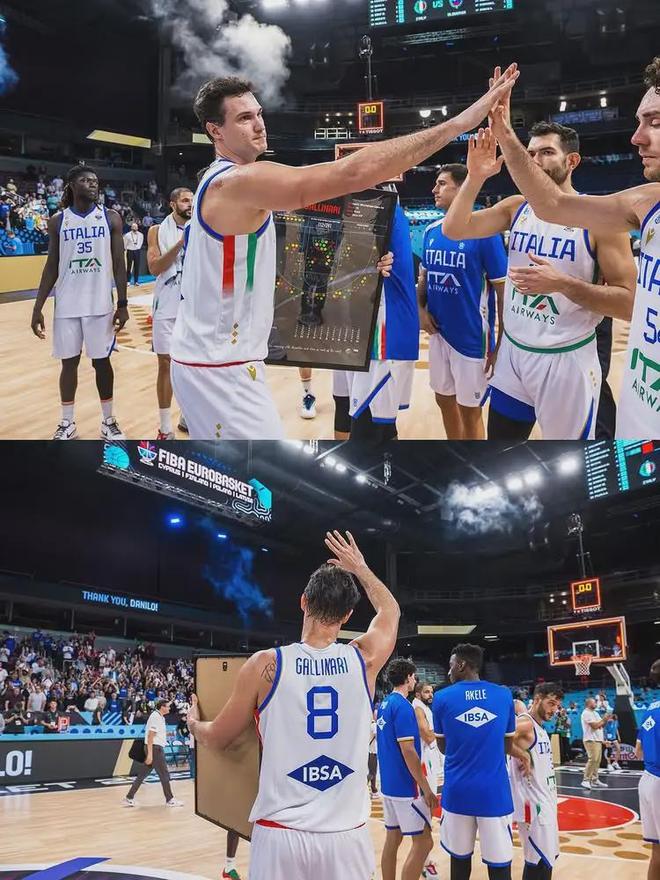 今年9月8日,男篮欧洲杯1/8决赛:斯洛文尼亚84-77淘汰意大利。加里纳利替补出战11分43秒,7投3中拿到10分3篮板1助攻,正负值+4。这是他在国家队的谢幕战,意大利男篮为加里纳利举行一个简短的仪式。