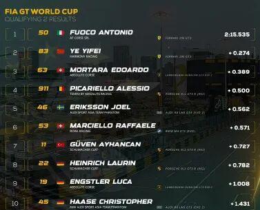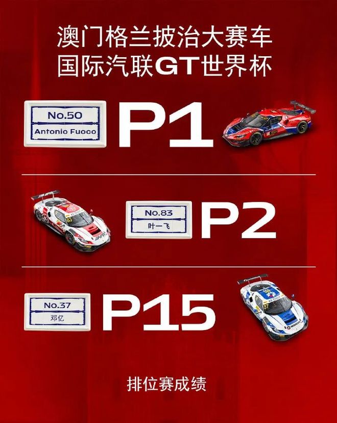 第72届澳门格兰披治大赛车已于11月13日拉开帷幕,继去年在这一赛场初次亮相后,时隔一年时间,带着“历史上首次夺得勒芒24小时耐力赛冠军的中国车手”荣誉的叶一飞,再度回到了东望洋赛道。 在11月14日进行的超级杆位赛中,叶一飞驾驶83号和谐车队法拉利296 GT3,以2分15秒809的成绩斩获第二(仅落后杆位0.274秒),刷新个人及中国车手在澳门GT赛事中的最佳排位成绩。 在GT世界杯排位赛中,两辆法拉利的表现也非常出色,Antonio Fuoco和叶一飞包揽前两名,实现了两台法拉利296 GT3在世界杯选拔赛中头排发车的盛况。 世界杯选拔赛结果毫无悬念,两辆法拉利继续包揽前两名,明天进行的正赛中,他们也将头排起步。 |