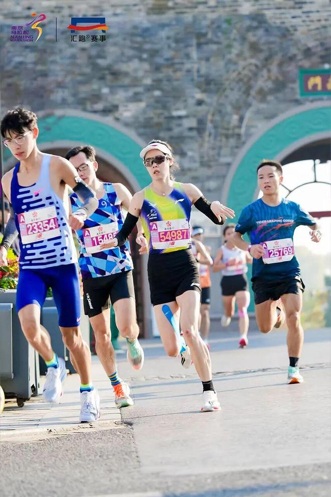 今天的南马天气略微有些热,起跑时气温为10度,随后气温便不断飙升,对参赛选手来说并不算很友好。尽管已为全马准备近一年时间,但郑小倩说,站上起跑线时的自己心里还是有点没底。 过去一年里,郑小倩屡次试水10公里和半马。备战严谨的她在10公里PB跑到33分11秒、半马PB实现1小时12分56秒时,推算自己全马打开230,应该不会有太大的难度。为了南京首马,在过去的三个假期里,她三上高原,今年更是在利用暑假时间在上面待足了80天,将自己的月跑量保持在500-600公里。 有备而来,是郑小倩备战全马时很明显的特征。她把在体制内训练的扎实功夫下在了自己的有氧耐力训练上。站上南马赛道时,她的学生,作为“私兔”全程陪伴,给她带来了很大帮助——比如刚出发时,看到第一集团选手离自己并不远时,她也“着急”试着追赶,但“私兔”选择让她稳住;而半程后,“私兔”也会不断提醒她调整深呼吸和节奏。
